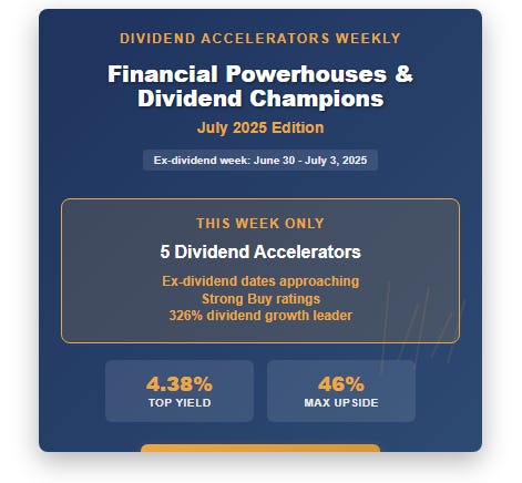 Our top-ranked dividend accelerator shows 20% dividend growth AND analyst price targets suggesting 46% upside potential. With its ex-dividend date hitting July 3rd, this could be the perfect storm of income and appreciation. Access full report here.
